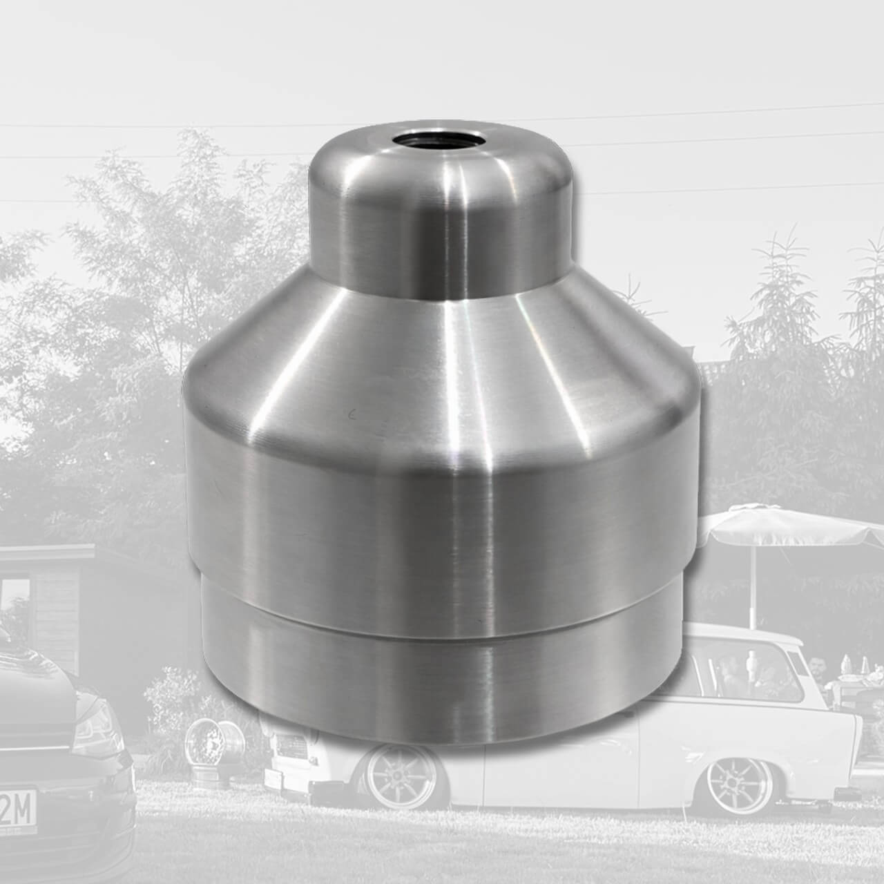 Reperaturka mocowania wahacza do wspawania w podłogę Trabanta 601 i 1.1. Wysokie mocowanie środkowe (52 mm). Przetoczenie centrujące gwarantuje fabryczną geometrię zawieszenia.