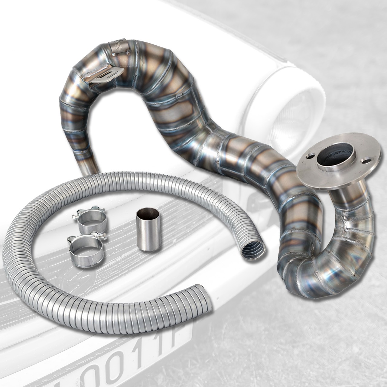 - W większości wydechów wtórny punkt mocowania leży po stronie klienta; my dospawujemy jedynie uniwersalny uchwyt. Montaż musi być wykonany z użyciem gumowego silentbloku, aby uniknąć ewentualnego pęknięcia (konieczny jest minimalny luz umożliwiający swobodny ruch).